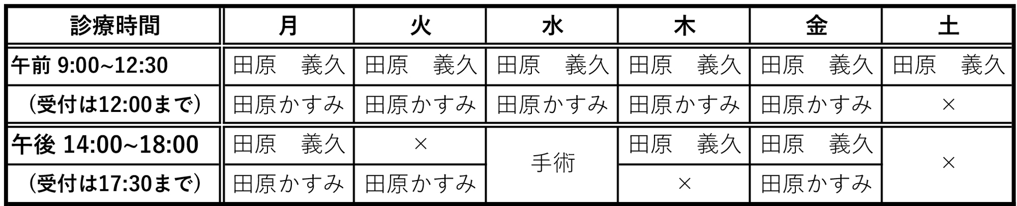 ※ 水曜日の午後は手術日ですので外来診療は行っていません